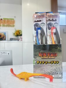 恐竜歯ブラシ🦕🔥 スタッフ日記 2026.03.10 3月になり少しずつ気温も上がってきましたね🌸 みなさん花粉症は大丈夫でしょうか❔ 今日は当院に新しく歯ブラシを紹介します♩ なんと恐竜の歯ブラシです🥳 男子のリクエストのお応えしてスタッフが取り入れてくれました〜 恐竜大好き男の子にはたまらないようでなかなかの人気です♪ 受付横にサンプルも展示してありますのでぜひお手に取ってご覧ください。 これで男子のやる気も出るはず💡 \予防歯科・小児歯科矯正で健康な未来をサポートします!/ ひまわりデンタルクリニック 佐藤